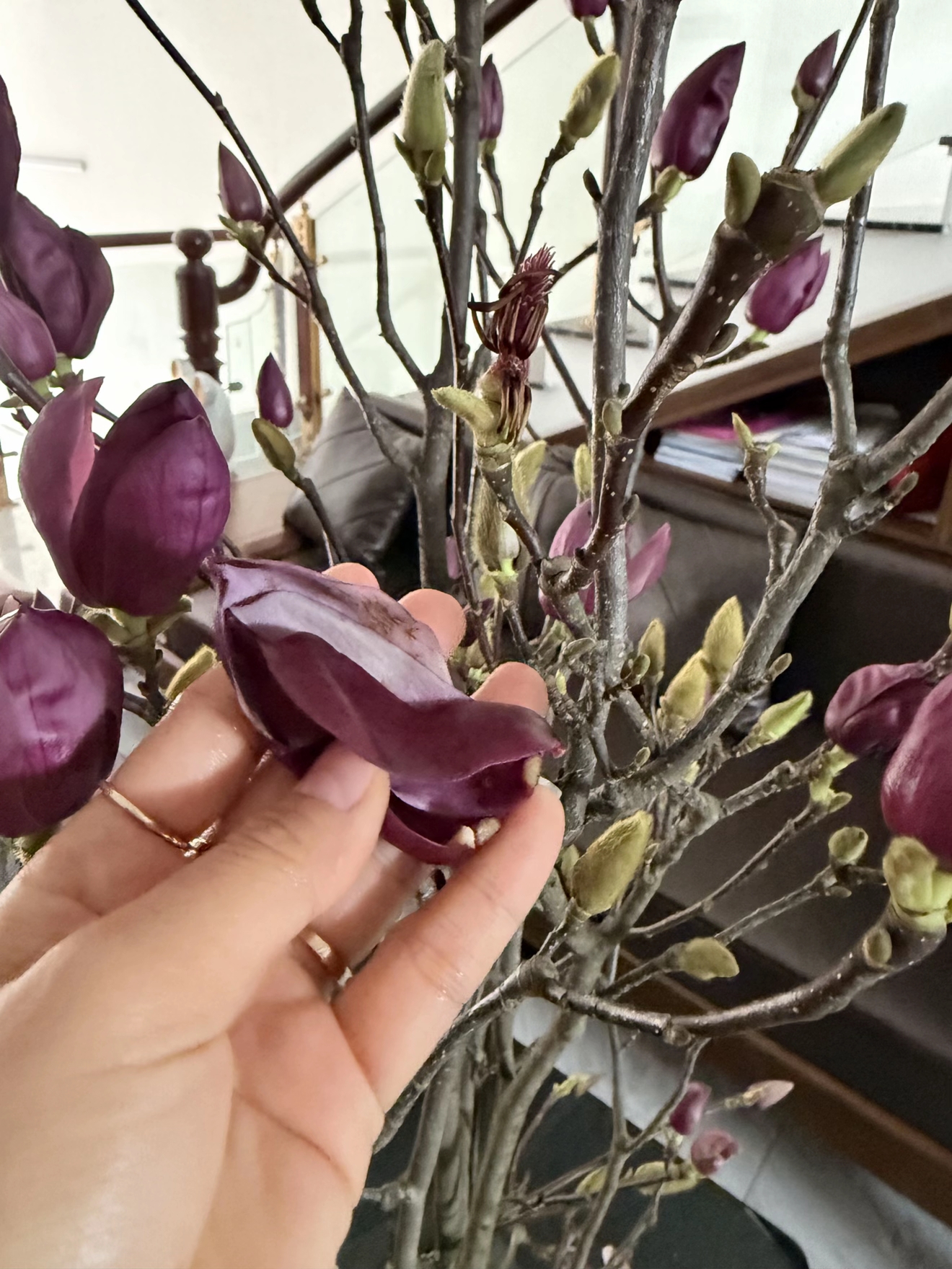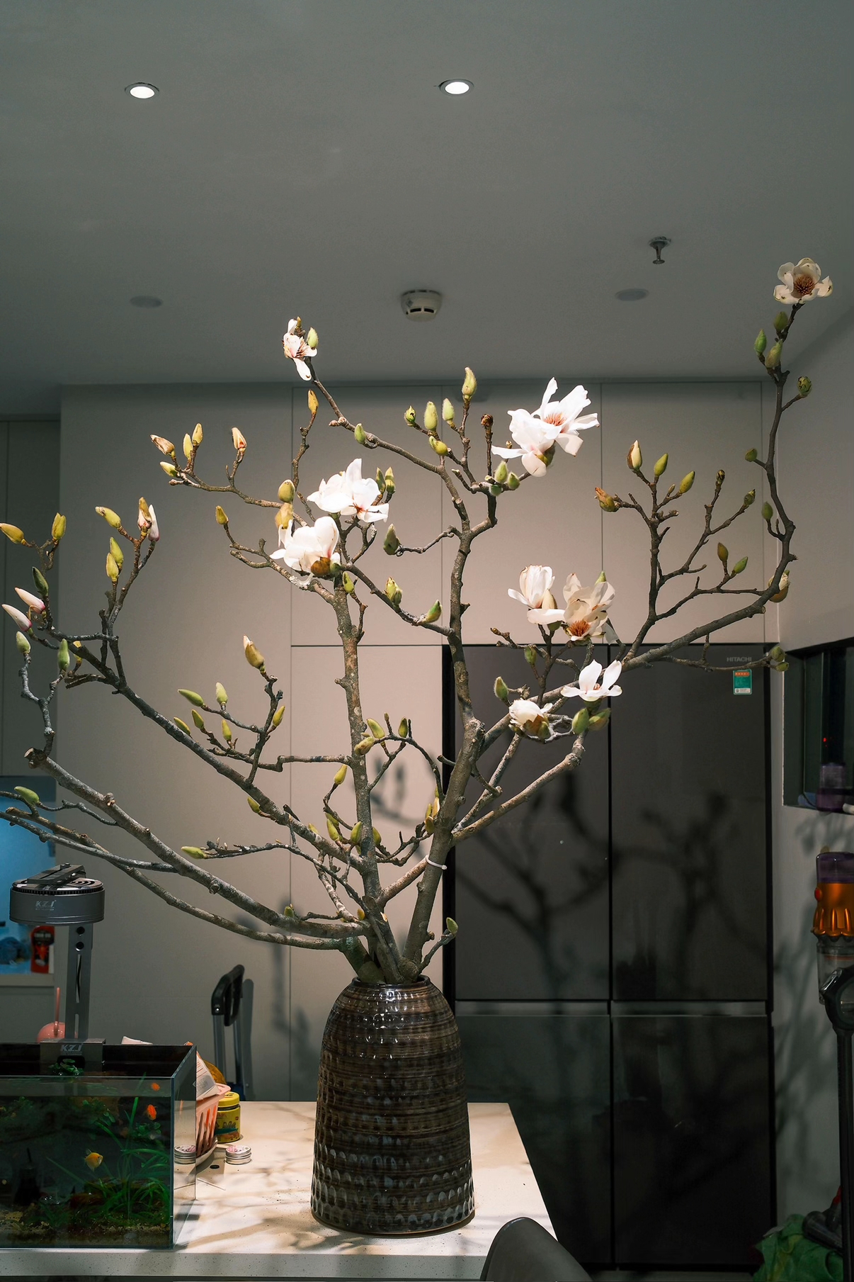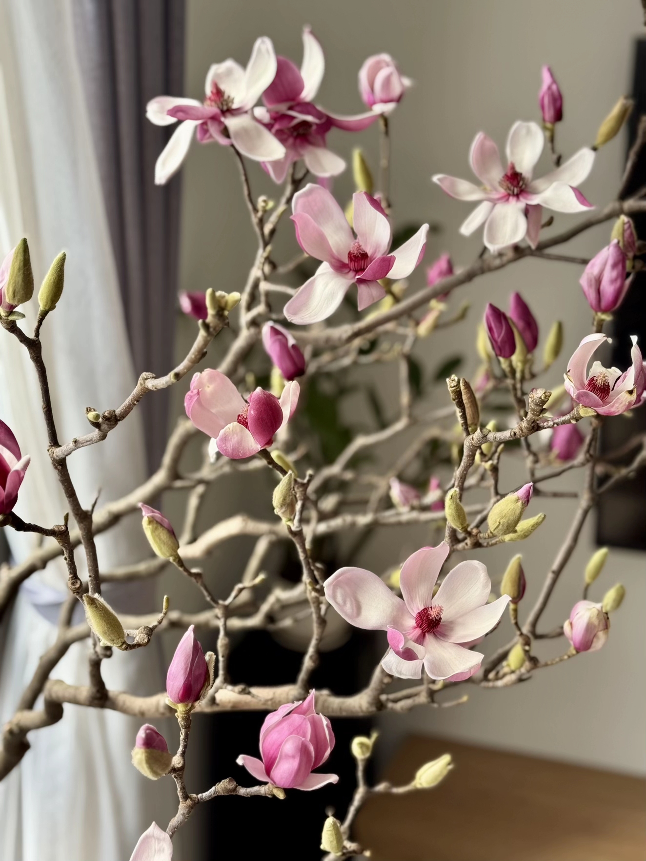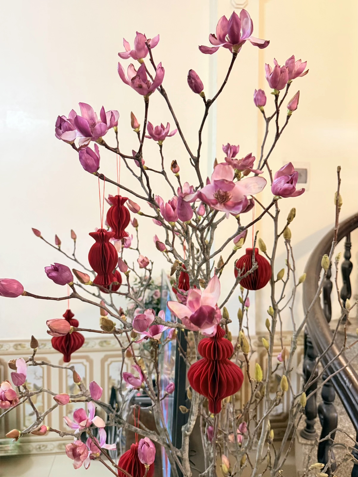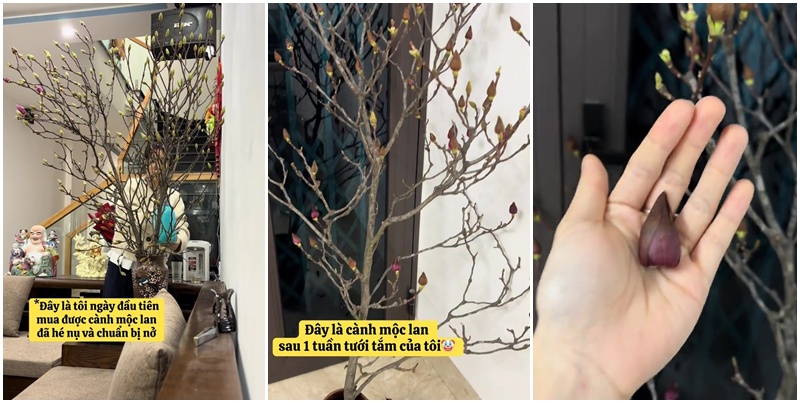 Với dáng cành thanh mảnh, nụ hoa to, màu sắc hồng phớt đến tím đậm sang trọng, mộc lan nhanh chóng chiếm sóng từ các hội cắm hoa, decor nhà cửa cho tới những bức ảnh khoe phòng khách ngập không khí xuân. Không ít người sẵn sàng chi tiền triệu để mang về một bình hoa mộc lan thật đẹp, coi đó như điểm nhấn sang - xịn - mịn cho dịp năm hết Tết đến.