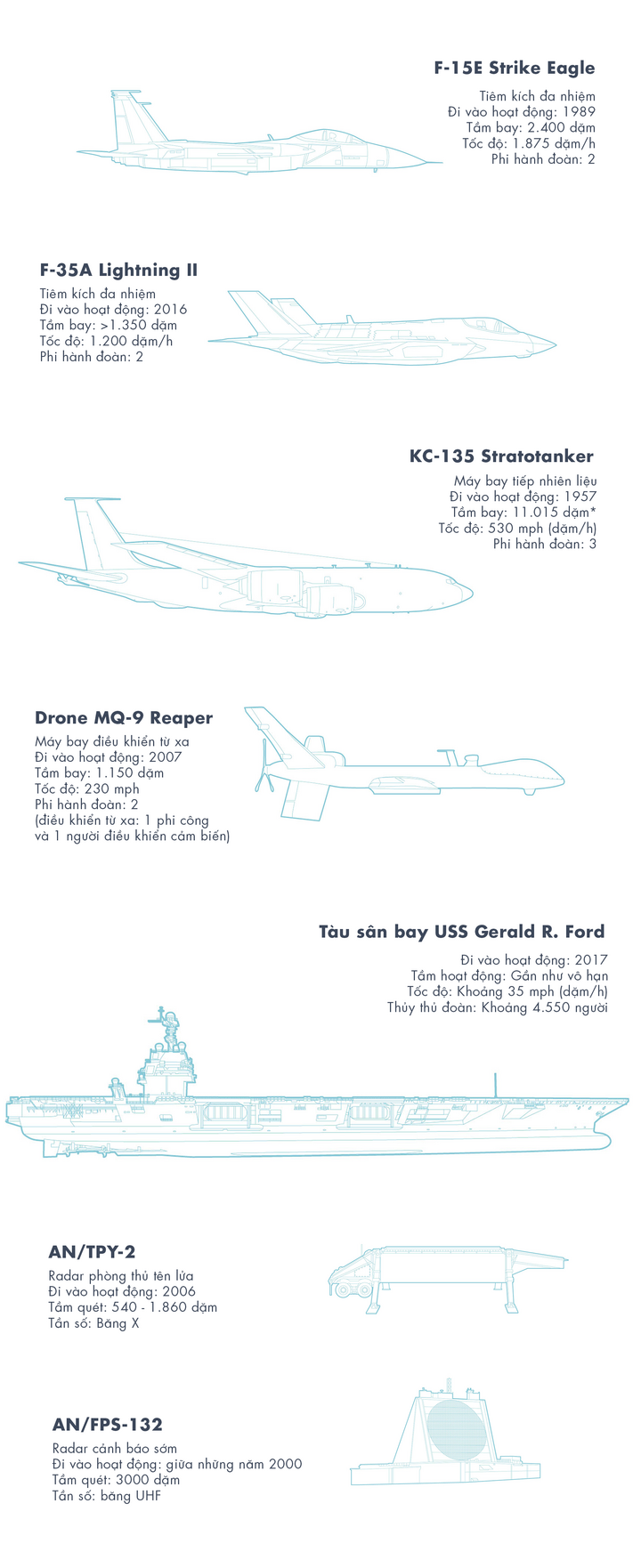 Chi tiết các khí tài quân sự Mỹ bị phá hủy và hư hỏng sau một tháng xung đột Trung Đông. (Nguồn: Wall Street Journal)