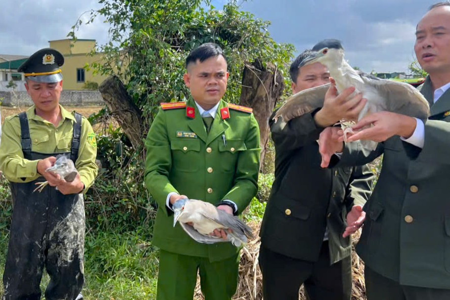 Công an, kiểm lâm thả cá thể chim hoang dã về lại môi trường tự nhiên