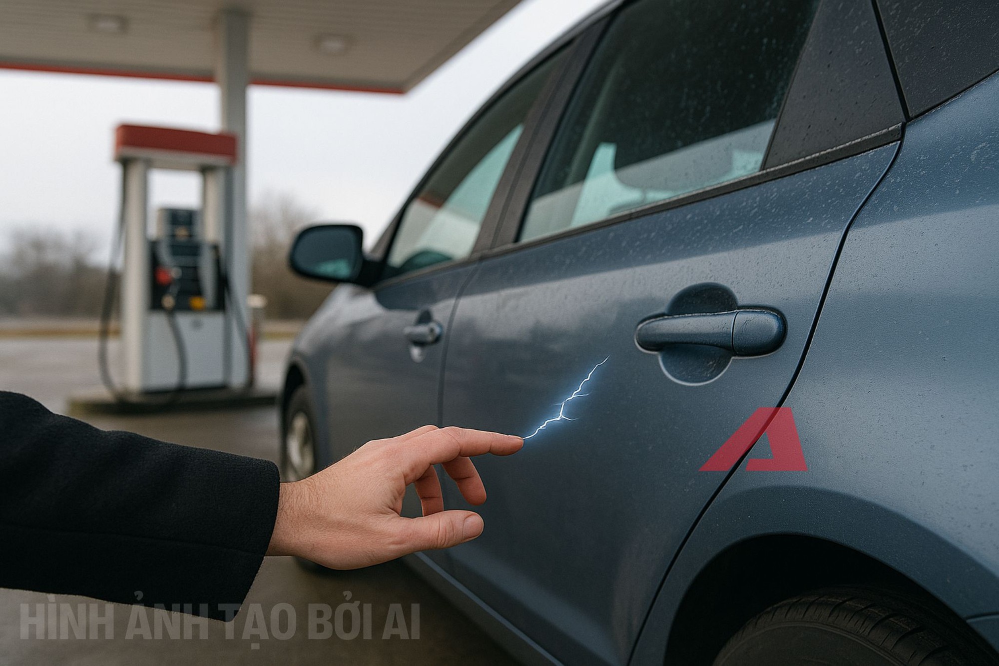 Hiện tượng phát ra tia lửa điện khi mở cửa vào mùa đông có thể gây nguy hiểm nếu đang ở trạm xăng. Ảnh minh họa