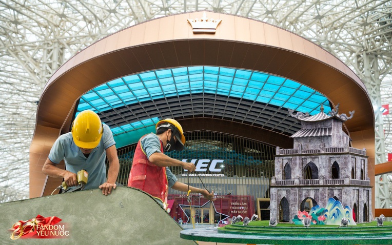Đặc biệt, đây sẽ là nơi diễn ra triển lãm kỷ niệm 80 năm Ngày Quốc khánh (2/9/1945 - 2/9/2025) với chuyên đề "80 năm Hành trình Độc Lập - Tự Do - Hạnh Phúc". Ghi nhận tại Trung tâm Triển lãm Việt Nam, các đơn vị thi công đang khẩn trương hoàn thiện việc lắp đặt các hạng mục phục vụ triển lãm. Không gian trưng bày gần 260.000m² dần trở nên rực rỡ khi hàng trăm lá cờ đỏ sao vàng được treo lên cao, phủ khắp trần nhà, tạo nên một khung cảnh vừa trang nghiêm vừa tự hào.