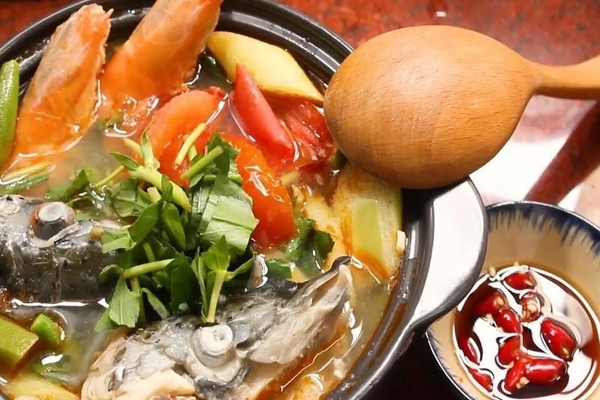 Nếu thích vị chua đậm hơn, có thể cho thêm vài quả sấu. Đun tiếp đến khi cá chín mềm, nêm lại gia vị cho vừa miệng. Cuối cùng, đập nhẹ vài quả ớt xanh cho vào để tăng vị cay nhẹ và mùi thơm.