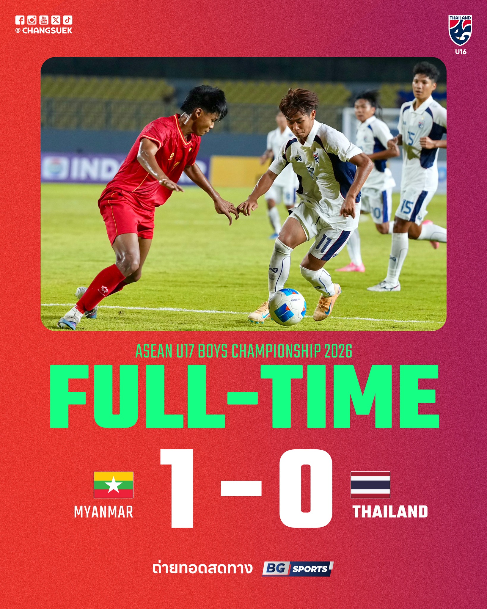 Chung cuộc, U17 Myanmar giành chiến thắng 1-0 đầy bất ngờ trước U17 Thái Lan. Kết quả này không chỉ tạo nên cú sốc tại bảng B mà còn khiến cục diện bảng đấu trở nên khó lường hơn bao giờ hết. Với 3 điểm quý giá, Myanmar có thêm cơ hội cạnh tranh tấm vé đi tiếp, trong khi Thái Lan buộc phải nỗ lực ở những lượt trận còn lại nếu không muốn sớm rơi vào thế bất lợi.