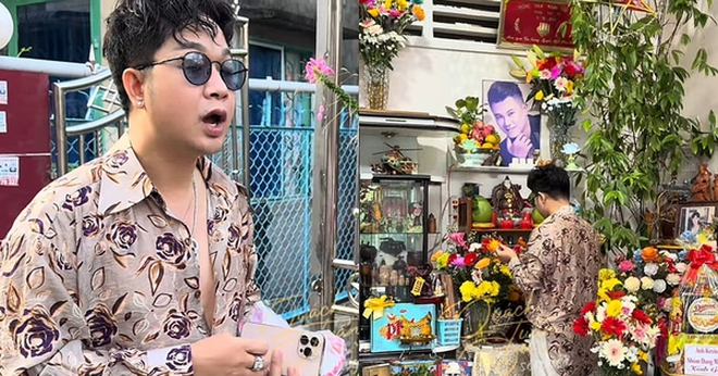 Trước khi phát quà từ thiện và ra thăm mộ, Quách Tuấn Du tới tận nhà cha mẹ ruột của Vân Quang Long từ sáng sớm để thắp hương trước di ảnh và ban thờ bạn thân.