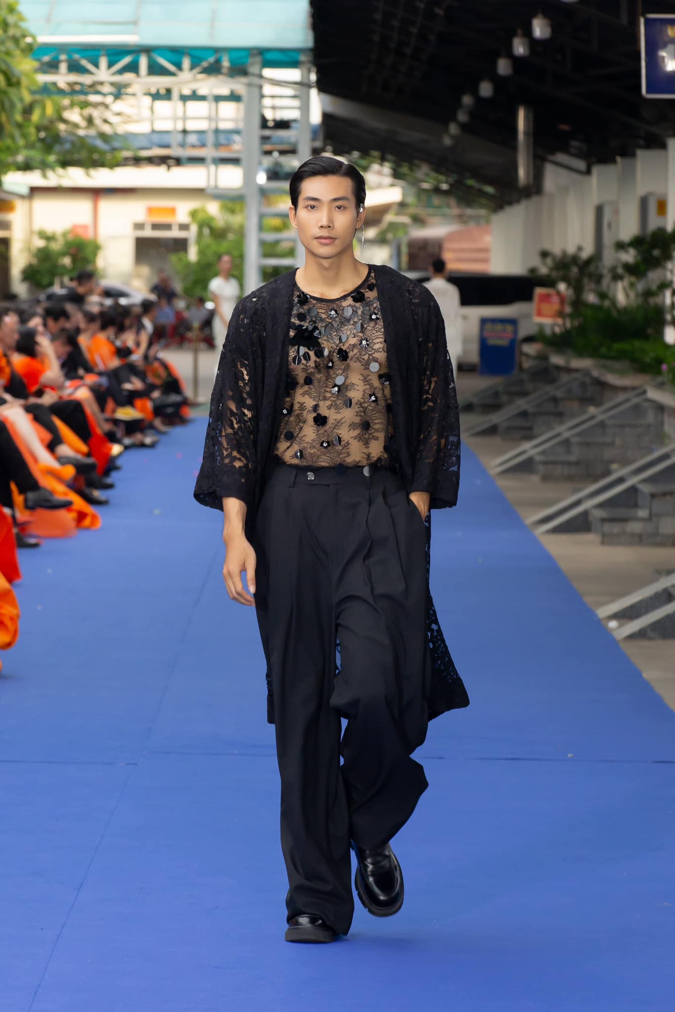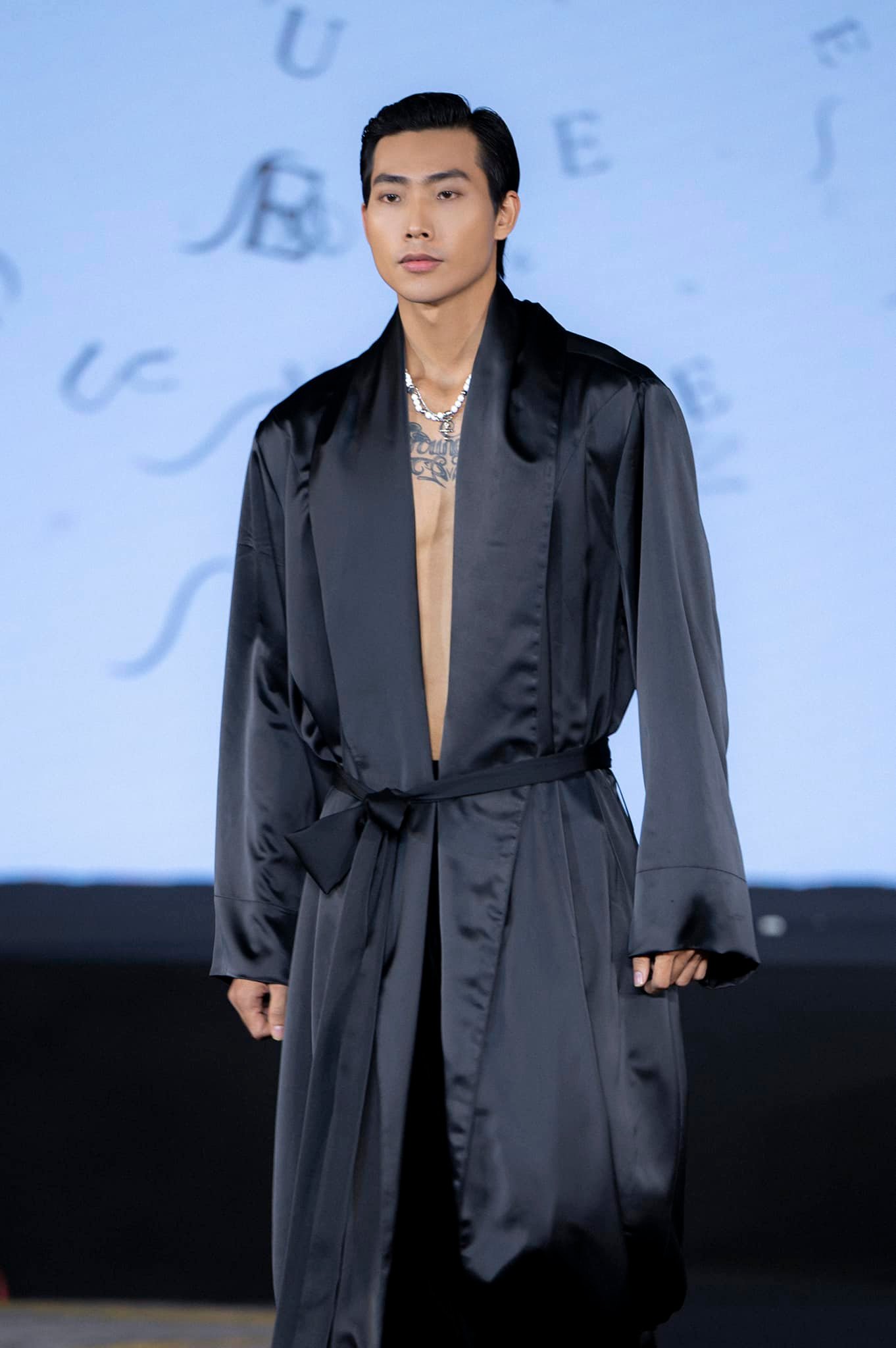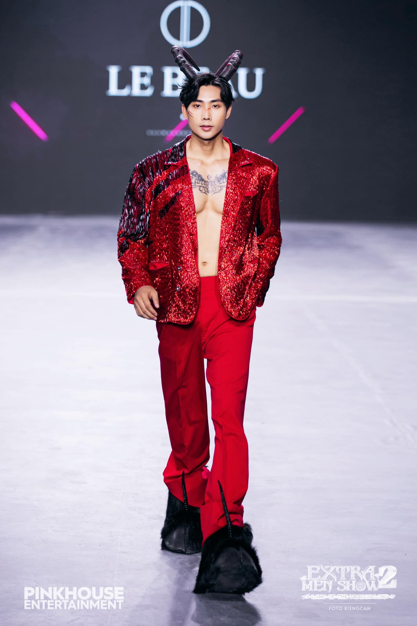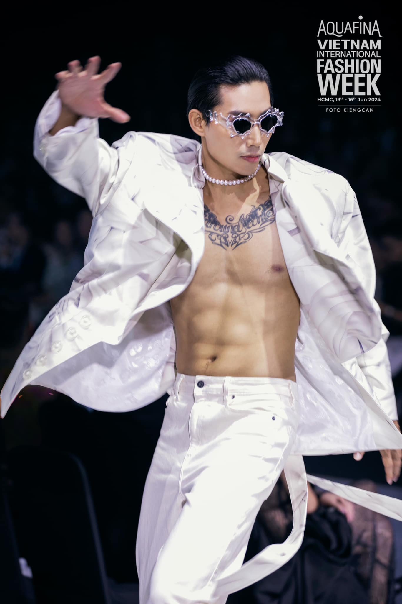 Điểm khiến Hữu Long đặc biệt hút mắt chính là body 6 múi, bờ vai rộng, cơ bụng săn chắc và chiều cao nổi bật. Khán giả quá quen với hình ảnh nam thần siêng cởi áo trên sàn catwalk: khi thì semi-nude khoe hình thể dưới lớp ren xuyên thấu, khi lại thả cúc áo đầy chủ ý để lộ hình xăm ở ngực. Mỗi lần xuất hiện đều khiến mạng xã hội dậy sóng vì độ cuốn hút khó cưỡng.