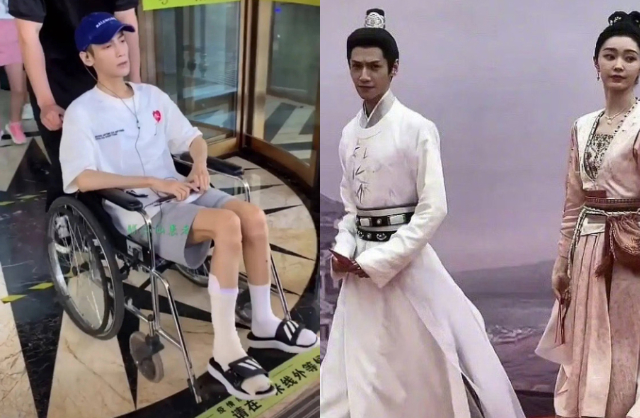 La Vân Hi ép cân đến mức ngồi xe lăn. Thân hình anh mỏng dính, trông gầy gò hơn cả diễn viên nữ. Ảnh: Sohu.