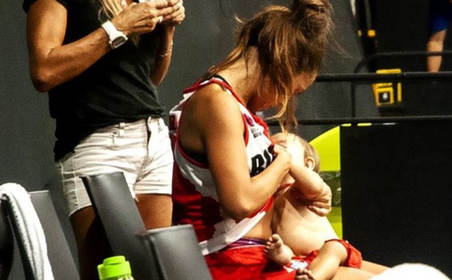 Nét đẹp thể thao: Cảm động khoảnh khắc nữ cầu thủ bóng rổ vừa thi đấu vừa chăm con - Ảnh 1.