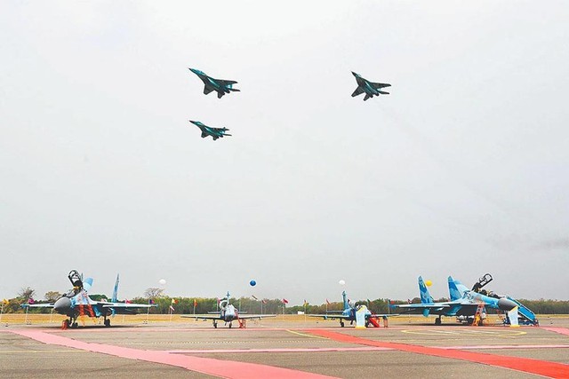 Sau khi cặp chiến đấu cơ nói trên được Không quân Myanmar tiếp nhận, một cuộc duyệt binh trên không đã diễn ra với sự tham gia của nhiều tiêm kích, máy bay vận tải quân sự và trực thăng.