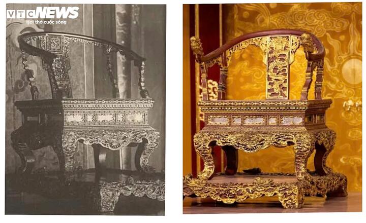 Sau sự việc gã đàn ông lẻn vào khu vực cấm phá hoại ngai vua triều Nguyễn trong Điện Thái Hoà (Đại Nội Huế), nhiều tài khoản mạng xã hội chia sẻ những hình ảnh so sánh điểm khác biệt của bảo vật quốc gia này trong hình ảnh tư liệu và thực tế hiện tại.