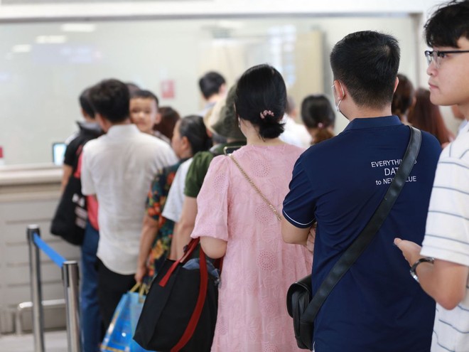 Nhiều người dân xếp hàng tại quầy để mua vé lên tàu (Ảnh: Vân Đức)