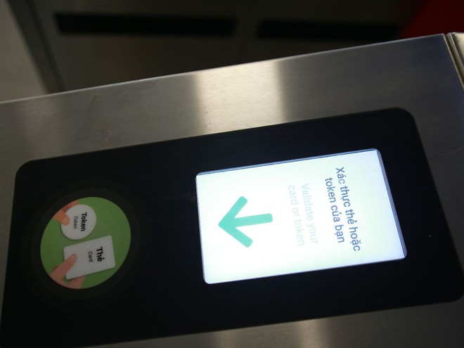 Màn hình hiển thị xác thực thẻ hoặc token trước khi hành khách lên tàu