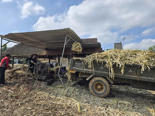 Nhờ có máy ép mía nên năng suất ép mía nhanh, nhiều hơn. Các lao động thay nhau ép mía, canh lửa, đảo mật không ngơi tay để kịp những đơn hàng cuối năm. Mỗi ngày, lò có thể ép 7-10 tấn mía tươi, nấu ra 500-650 lít mật thành phẩm. Giá bán hiện nay 23.000 – 25.000 đồng/lít. Mật được đóng thành những chai 1l, 5l, hoặc bán theo thùng phuy.