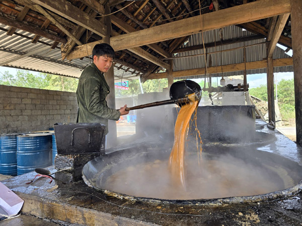Anh Lê Văn Sơn, chủ lò nấu mật Thông Mai, với hơn 20 năm gắn bó cùng nghề cho biết, thời điểm từ tháng 11 đến tháng 12 âm lịch là mùa cao điểm, công suất làm việc tăng gấp đôi so với ngày thường.