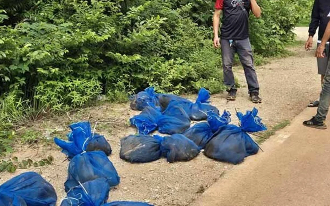 Tới nơi, họ đã phát hiện ra những con khỉ đuôi dài trong những chiếc túi lưới treo trong rừng tại nơi cách đường lớn khoảng 200m tại tiểu khu Hin Kong. Chủ sở hữu chính xác của những con vật này vẫn chưa được xác định.