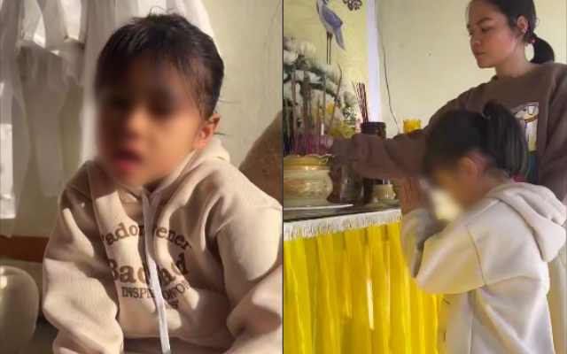 Hình ảnh con gái đứng trước di ảnh nói nhớ ba khiến nhiều người nghẹn ngào (Ảnh cắt từ clip)