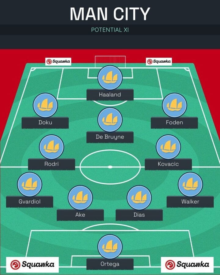Trong trường hợp Pep muốn sử dụng Bernardo Silva hoặc Savinho phía cánh phải, Foden sẽ chuyển hướng sang trái thay Doku. Cơ hội ra sân tại Ngoại hạng Anh của Grealish từ đó cũng giảm sút đáng kể.