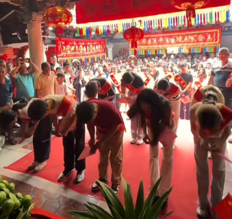 Trong nghi thức long trọng, các học sinh ưu tú khoác lên mình dải băng đỏ in chữ Hán “Wu zu zhi guang” – Vinh quang của tổ tiên, rồi thành kính dâng hương và cúi lạy trước bàn thờ dòng tộc.