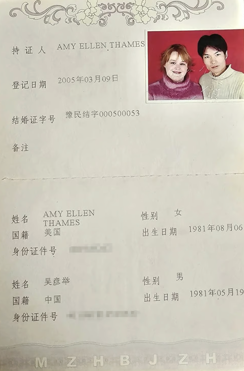 Tháng 3/2005, bất chấp khác biệt văn hoá, rào cản ngoại ngữ, học vấn, thậm chí khác biệt lớn nhất nằm ở… bồn cầu bởi Thames từng sốc khi phải làm quen với kiểu nhà vệ sinh ngồi xổm ở vùng quê Trung Quốc sau khi hai người đăng ký kết hôn.