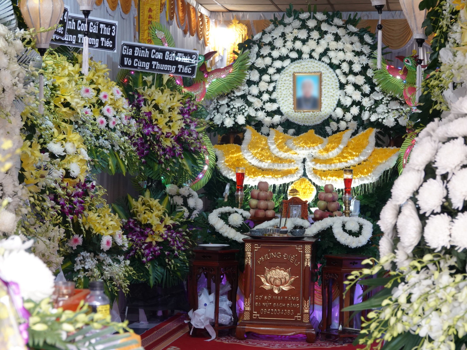 Người thân, hàng xóm lặng lẽ lần lượt đến chia buồn, thắp nén nhang tiễn đưa cụ bà 80 tuổi vừa bị sát hại. Trước nhà, những vòng hoa viếng xếp thành hàng dài, như càng làm không gian thêm nặng trĩu.