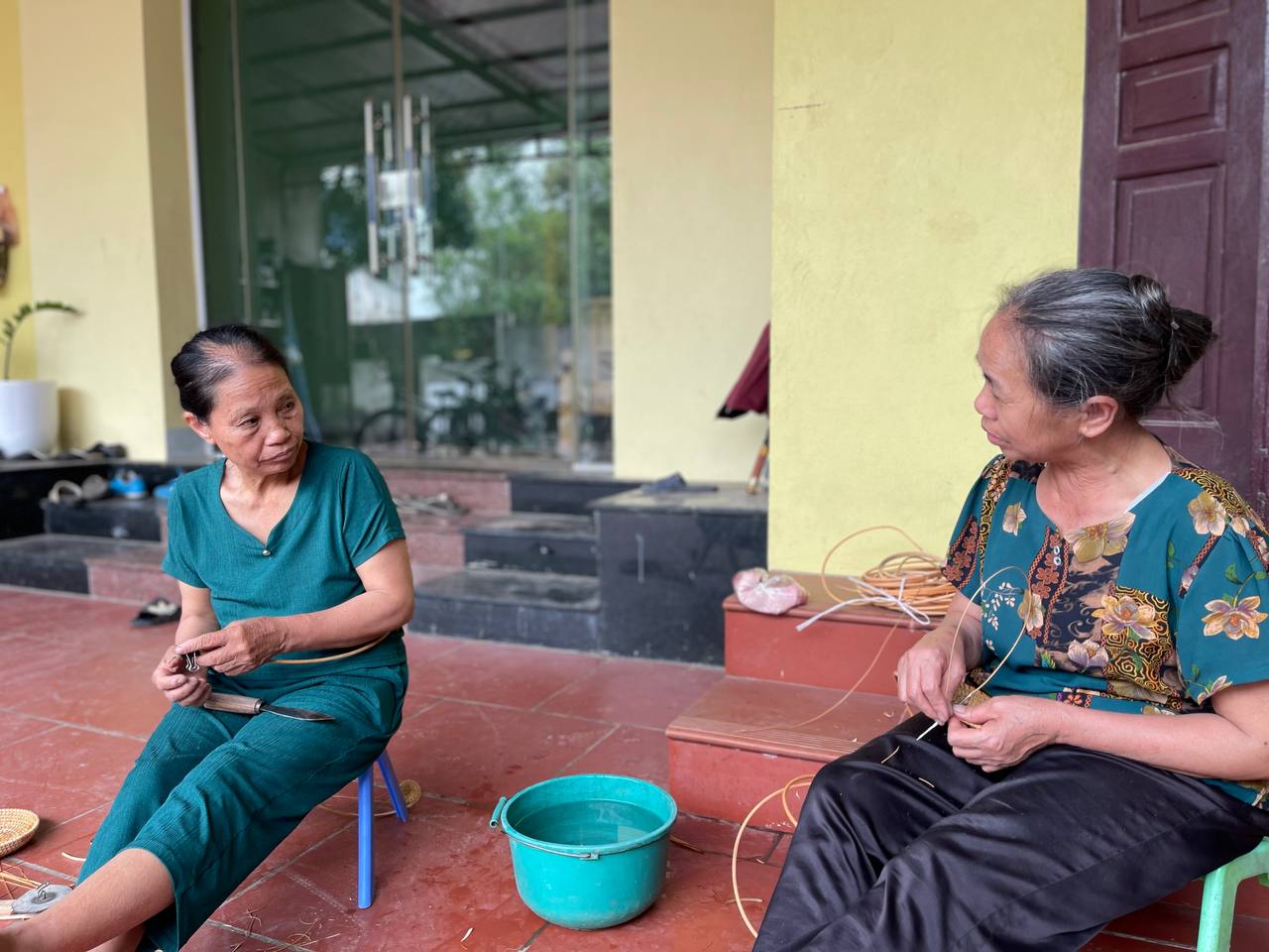 Dọn dẹp xong khu vực tầng 1, chị lên tầng trên để tiếp tục công việc dọn dẹp của mình.