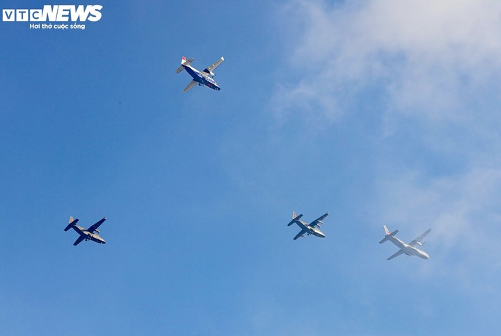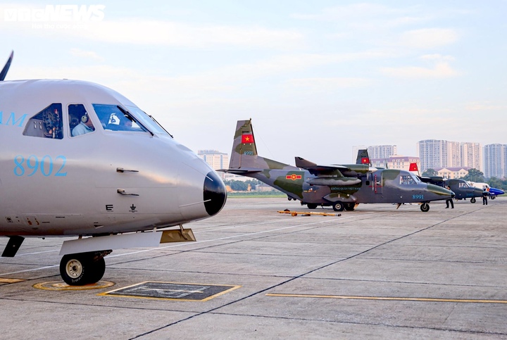 Chỉ sau vài phút, biên đội CASA lần lượt tăng tốc, nhấc bánh khỏi mặt đất, nghiêng cánh hướng về phía trung tâm Thủ đô. Chiếc C-295 của Thượng tá Nguyễn Đắc Quang cất cánh đầu tiên, thực hiện nhiệm vụ trinh sát khí tượng và bay đơn. Theo sau là ba chiếc CASA C-212i và C-212-400.