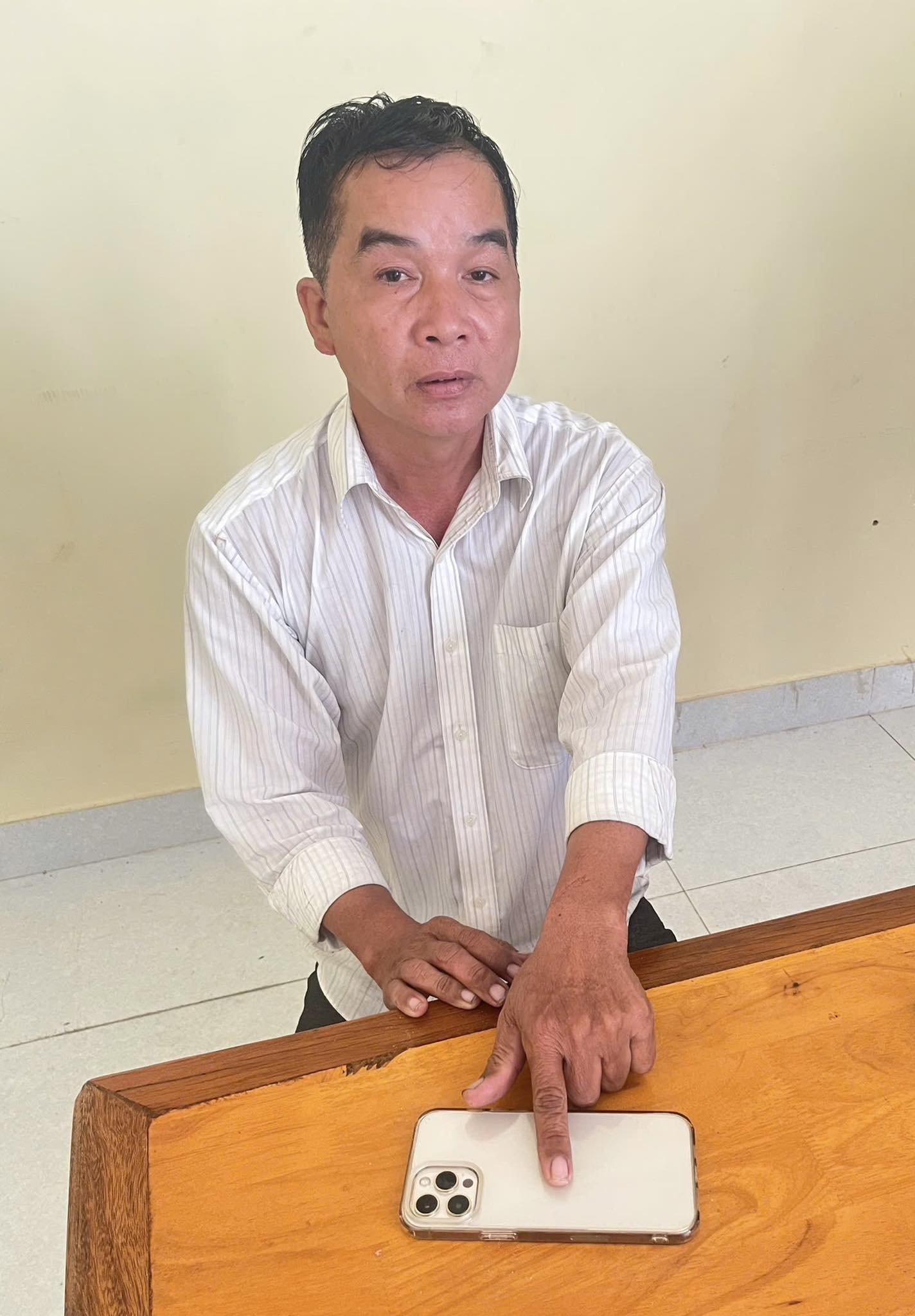Đến 14h cùng ngày, khi tỉnh giấc anh phát hiện điện thoại đã không cánh mà bay. Qua kiểm tra camera, ghi nhận vào lúc 12h58 cùng ngày có một người đàn ông mặc áo trắng dài tay, quần dài, đội nón tai bèo, đi dép trắng vào nhà khoảng 1 phút rồi rời đi với biểu hiện nghi vấn.