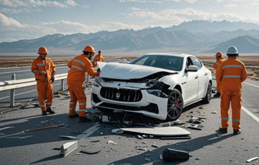 Sau tai nạn, phần đầu của chiếc xe Maserati bị hư hỏng nghiêm trọng. Ảnh toutiao.