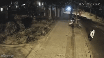 Theo nội dung đoạn clip thì vào khoảng 23h20' ngày 29/4 vừa qua, hai người đàn ông đi xe máy hiệu Vespa có dừng trước cây mít. Sau đó, một người đàn ông dứng dưới làm trụ đỡ và người còn lại trèo lên vai để hái mít. Khi hái được mít, hai người nhanh chóng lên xe máy rồi rời đi.
