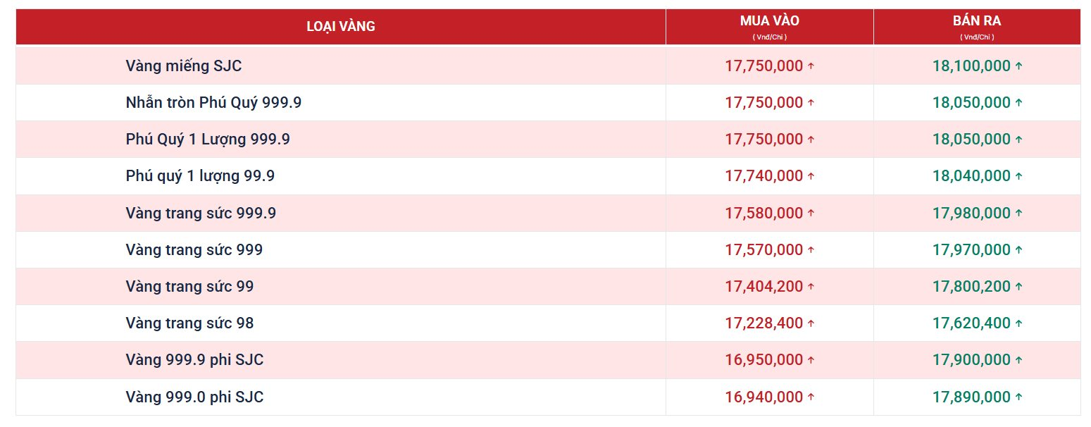 Thông báo này được đưa ra trong bối cảnh giá vàng và bạc tại hệ thống đang neo ở vùng giá cao. Theo niêm yết trên trang web của Vàng bạc Phú Quý, giá vàng miếng SJC và nhẫn tròn trơn đều giao dịch quanh mốc 18 triệu đồng/chỉ bán ra.