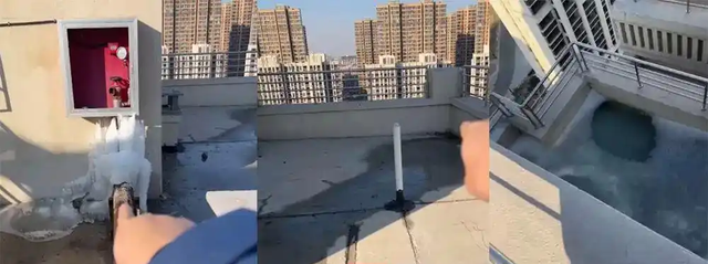 Tòa nhà này có tổng cộng 18 tầng, nguyên nhân ngập nước là do đường ống cứu hỏa trên tầng thượng bị vỡ. Nước theo miệng thoát nước trên tầng thượng tràn xuống ban công tầng 18, tích tụ lại thành một lớp sâu gần 30cm. Nước tràn ra khỏi ban công, tràn qua cửa sổ phòng ngủ phụ của nhà chị Vương thấm vào bên trong, chảy xuống bàn và tràn ra khắp sàn nhà.