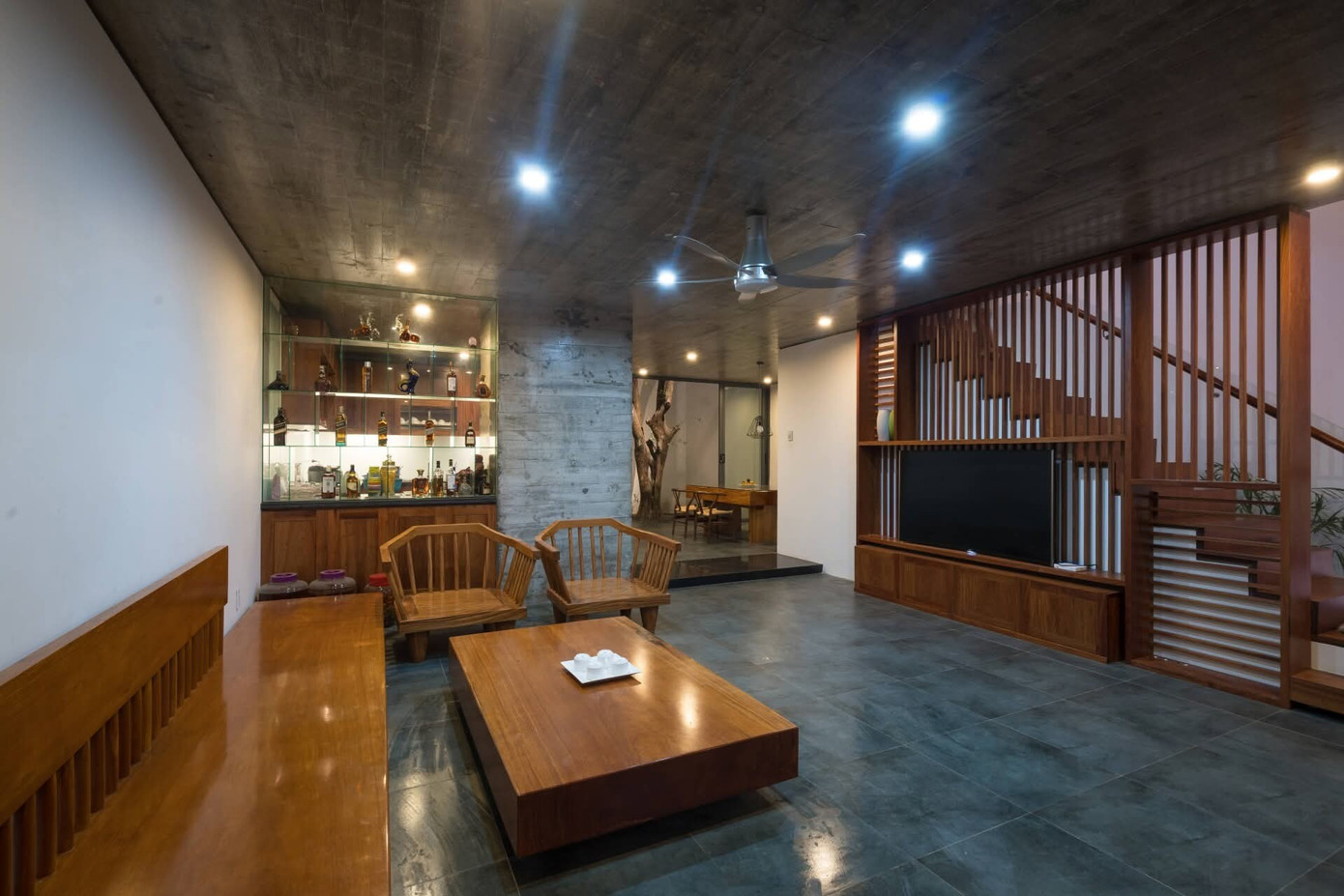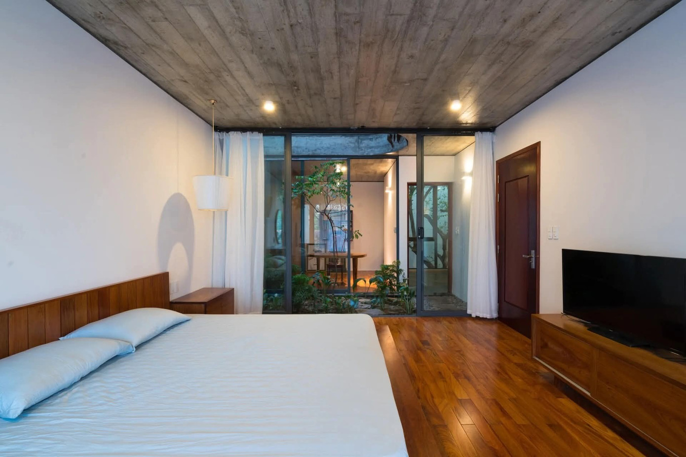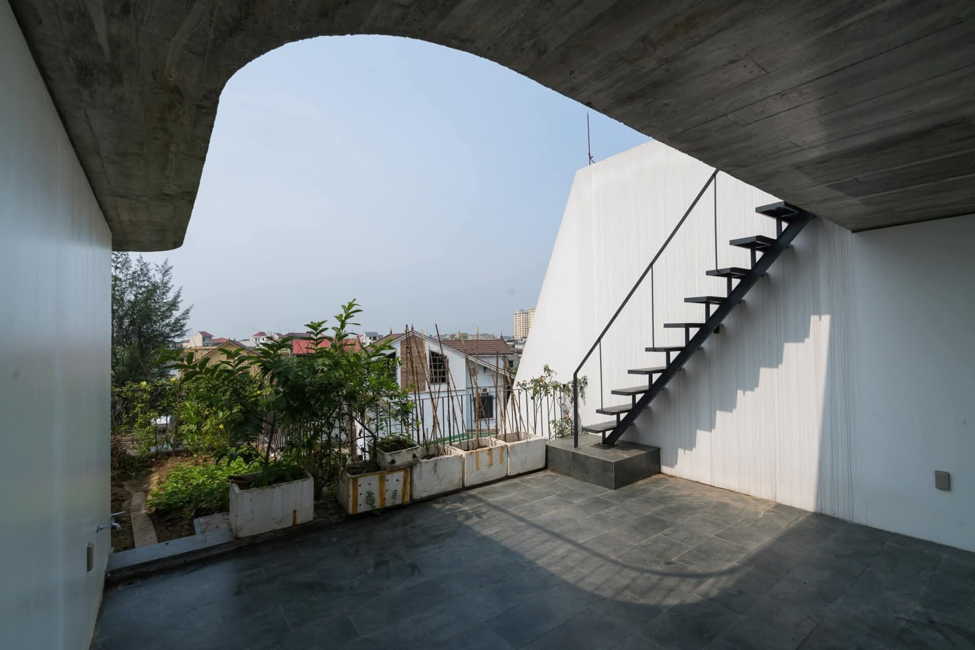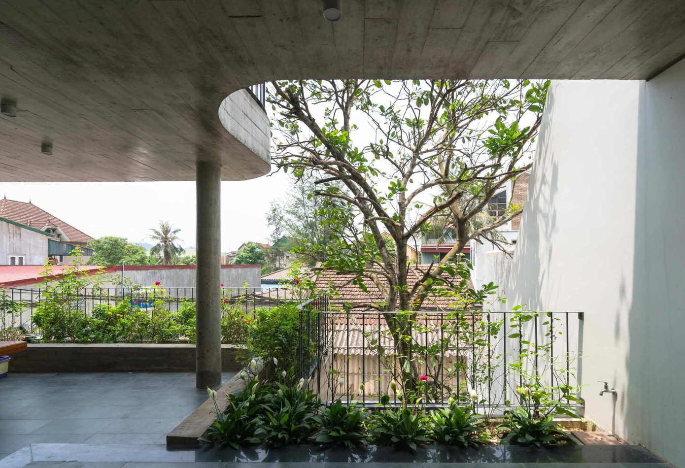 Kết hợp giữa những mảng miếng mềm mại, giếng trời và cây xanh, mỗi góc trong ngôi nhà đều có thể tiếp chạm thiên nhiên. Nhờ vậy, công trình mang lại cảm giác sống gần gũi, nhẹ nhàng và giàu tính kết nối.