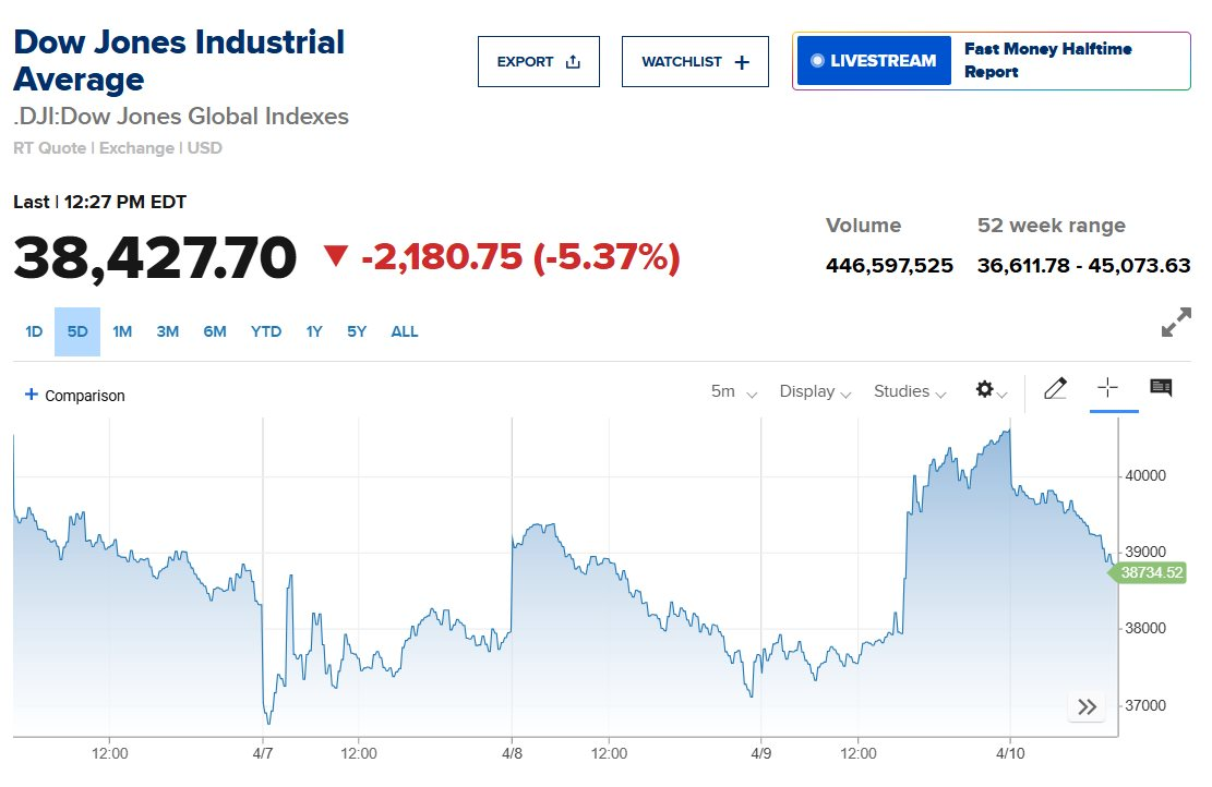 Động thái mới từ hai nền kinh tế lớn nhất thế giới đang làm dấy lên làn sóng lo ngại về cuộc chiến thương mại toàn cầu. Chứng khoán Mỹ sau một phiên tăng vọt đã quay đầu giảm điểm trong ngày 10/4. Chỉ số Dow Jones giảm 2.000 điểm, S&P 500 giảm 6% sau tin tức mới.