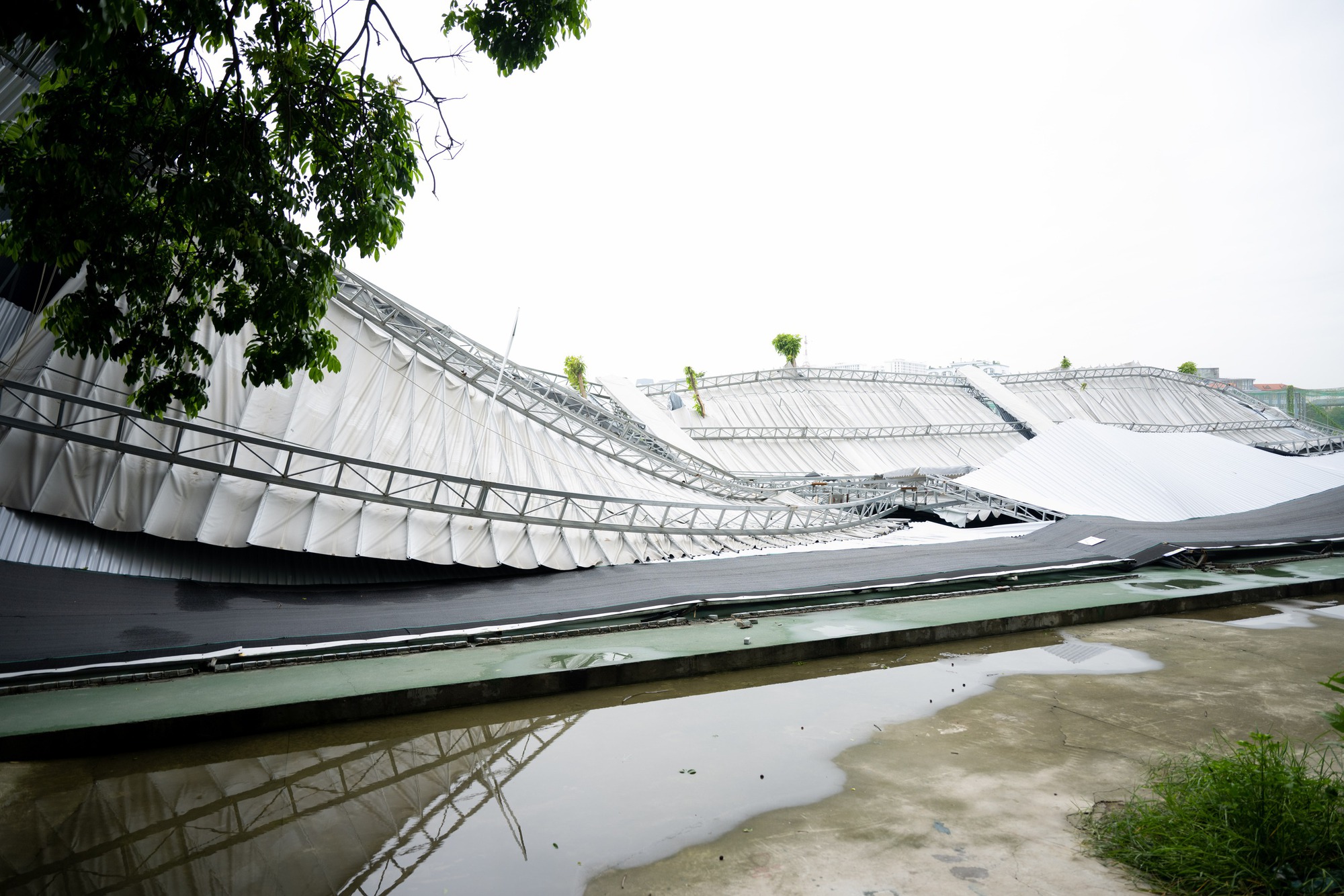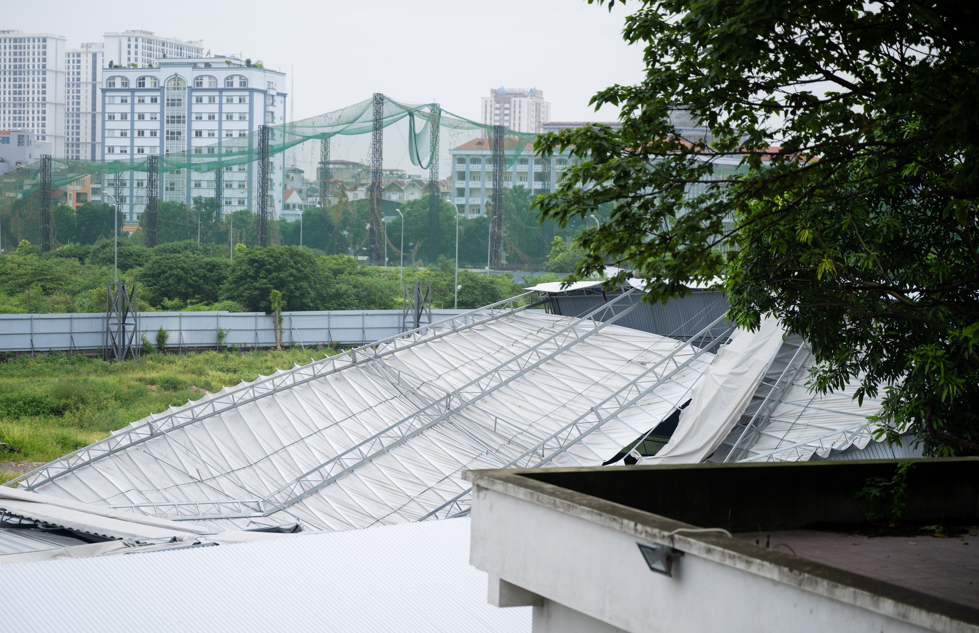“Nhìn ra cửa sổ, tôi thấy mái tôn từ khu sân thể thao bị gió quật đổ sập xuống. Nhiều người đang chơi ở đó hoảng hốt tháo chạy trong mưa lớn và gió giật dữ dội”, người này chia sẻ.