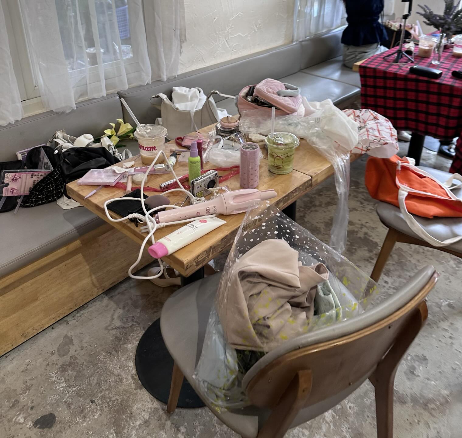 Thậm chí bày biện đồ làm tóc, makeup ngay tại quán cà phê