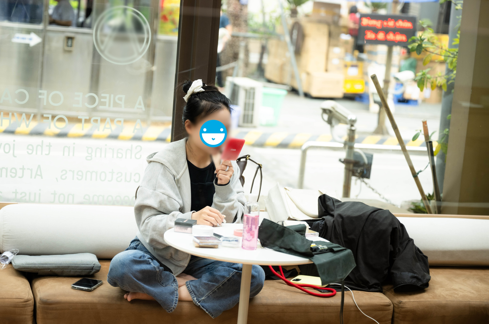 Vài cô gái makeup cam hồng đỏ lựng, mi giả dài đến mức không mở mắt nổi, quần áo hot trend, bước vào quán cà phê đặt phịch cái túi xuống bàn, bên trong toàn là phụ kiện, đồ trang điểm, chân máy, phụ kiện chụp ảnh,... Gọi 1-2 ly nước, ngồi một bàn nhưng họ dùng gần như toàn bộ không gian quán, đồ makeup trải hết ra bàn. Đôi khi còn chẳng quan tâm đồ uống ngon hay dở vì chỉ để đấy giữ chỗ, sau đó sẽ đi “tác nghiệp” khắp những góc đẹp.