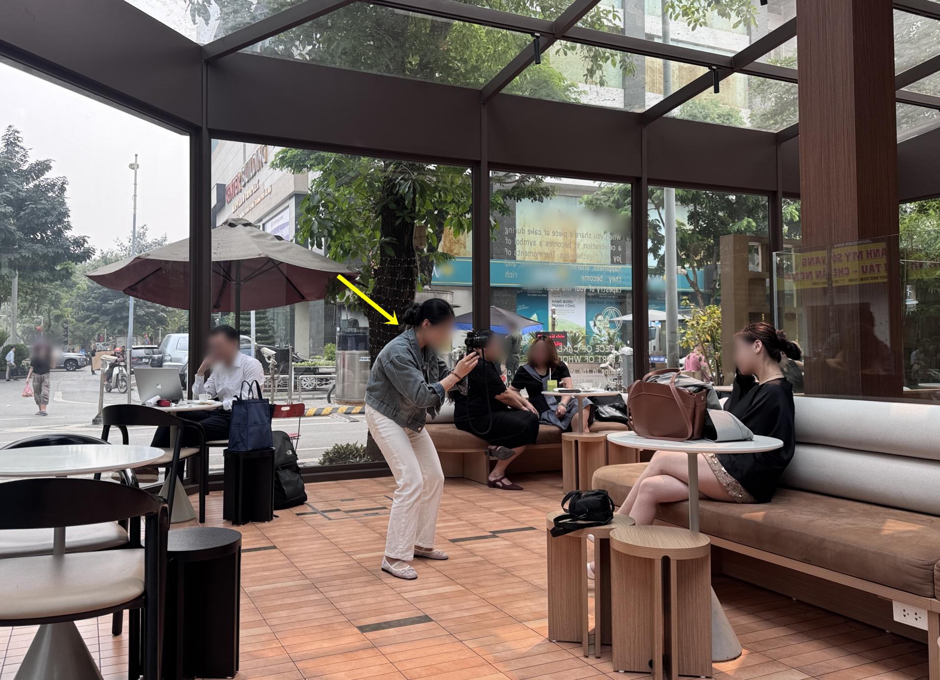 Một vấn đề khác là thời gian sử dụng không gian. Nhiều người chỉ gọi một ly nước nhưng ngồi rất lâu để chụp ảnh, chỉnh ảnh, quay video, thay đồ. Trong khi đó, những khách đến sau có thể không còn chỗ ngồi hoặc phải ngồi ở vị trí không mong muốn vì những góc đẹp đã bị “đặt chỗ” bằng túi xách, quần áo, đạo cụ. Việc trả tiền cho một ly nước đồng nghĩa với việc có quyền ngồi trong quán, nhưng không có nghĩa là có quyền sử dụng gần như toàn bộ không gian xung quanh.