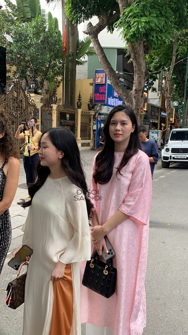 Mai Hà Trang - vợ cầu thủ Hà Đức Chinh diện áo dài trắng kem nhẹ nhàng, làn da qua cam thường trắng phát sáng