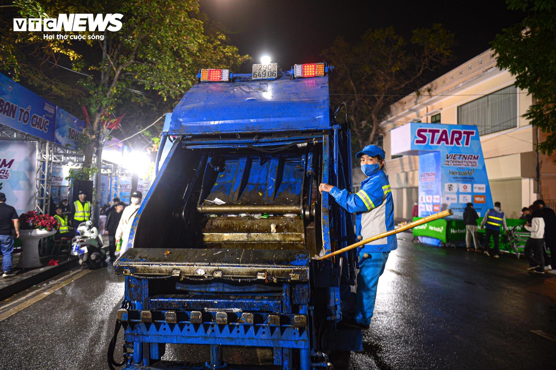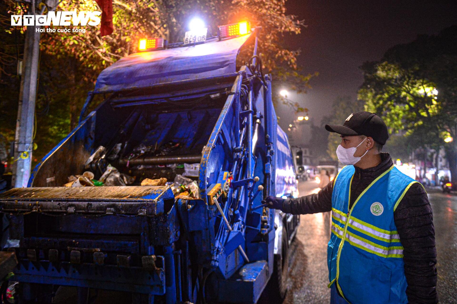 Nhân viên vệ sinh làm việc hết công suất để kịp trả lại đường phố sạch đẹp trước trời sáng.
