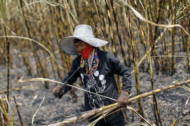 Một công nhân đang thu hoạch mía trên một cánh đồng tại huyện Pakchong, tỉnh Ratchaburi, Thái Lan. Ảnh: Reuters
