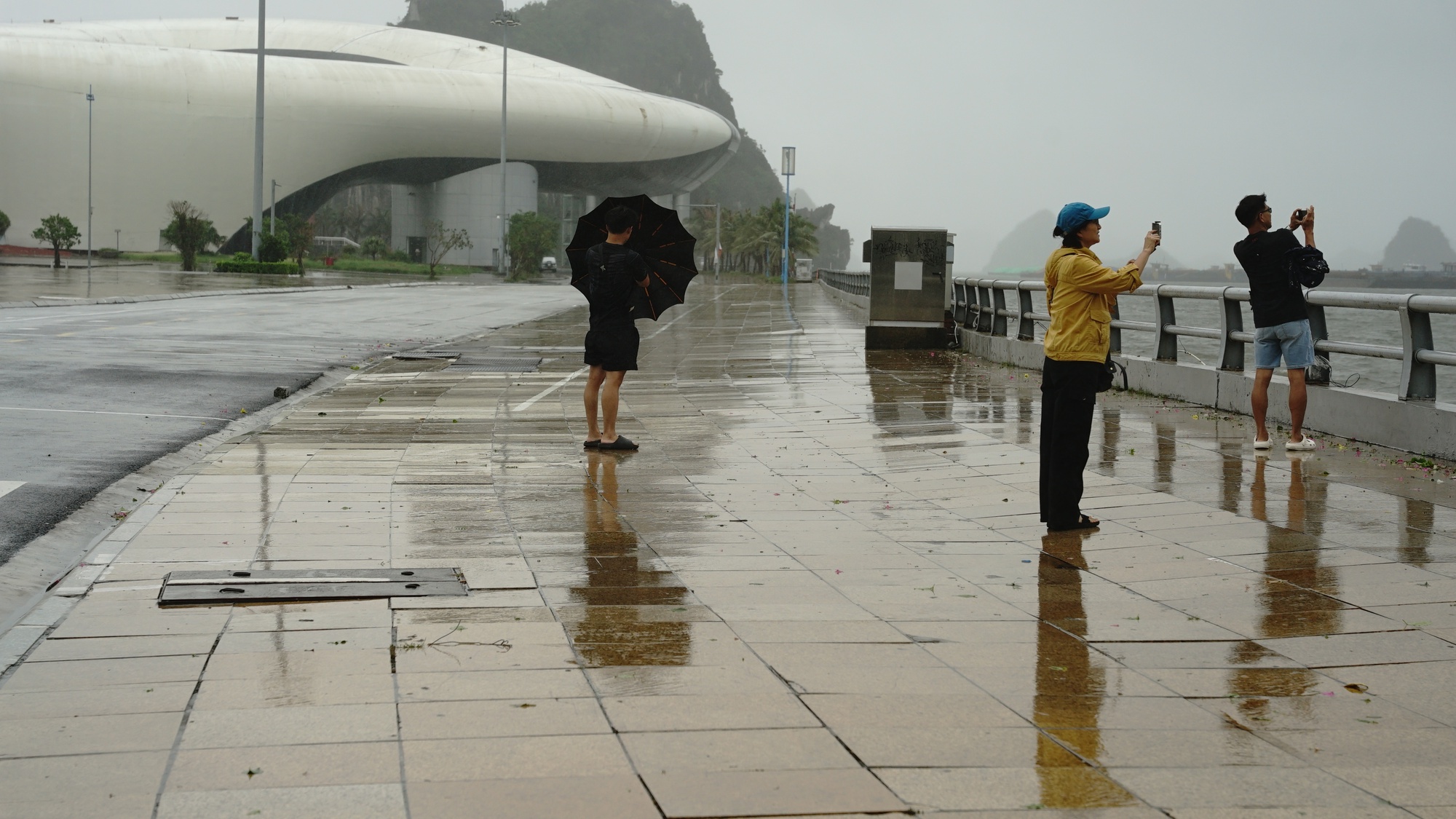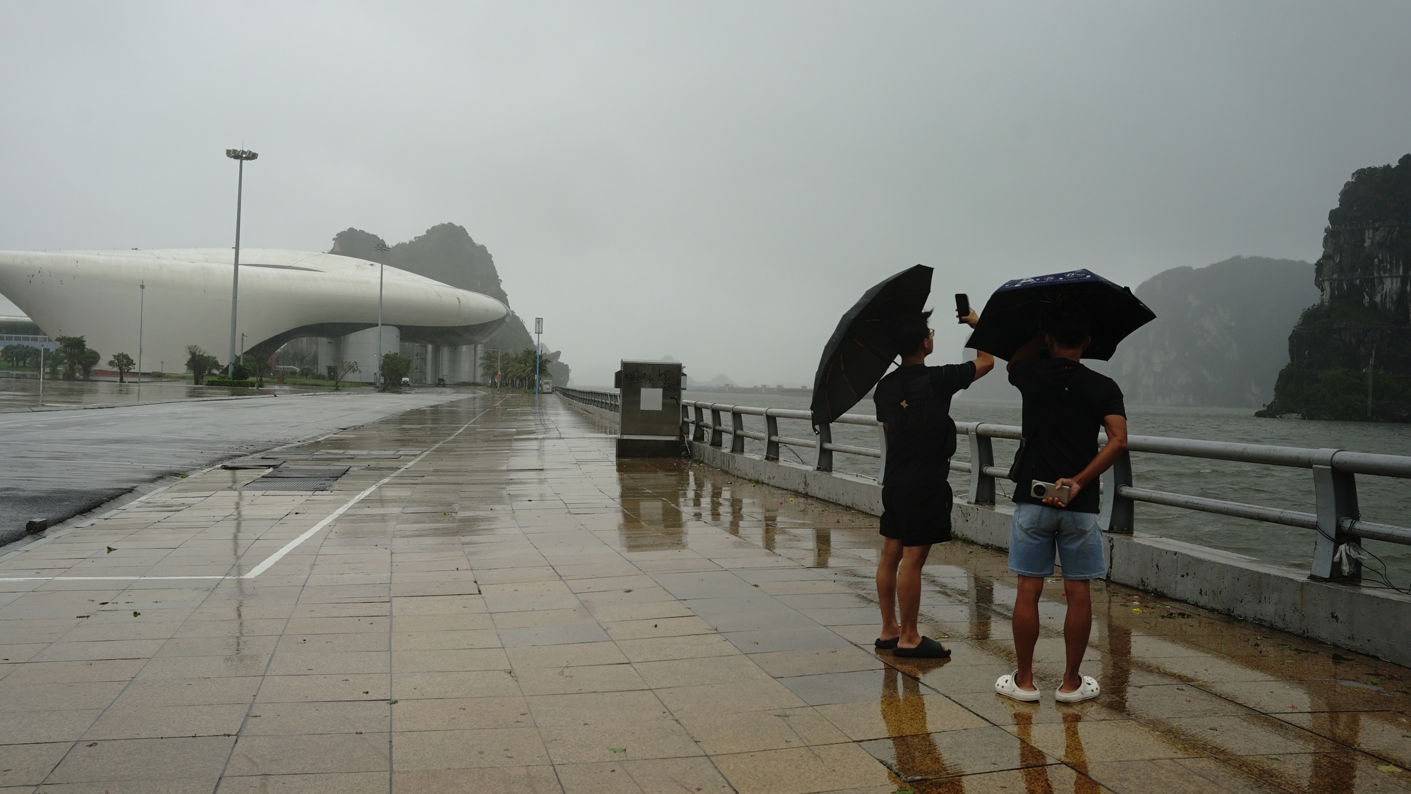 Tuy nhiên, trong lúc bão đang đổ bộ đất liền thì một nhóm du khách vẫn thực hiện một chuyến tham quan tại Quảng Ninh bằng xe ô tô. Bất chấp việc có mưa và gió mạnh, nhiều du khách vẫn xuống xe, tranh thủ chụp ảnh check in tại bảo tàng Quảng Ninh và tuyến đường ven biển.