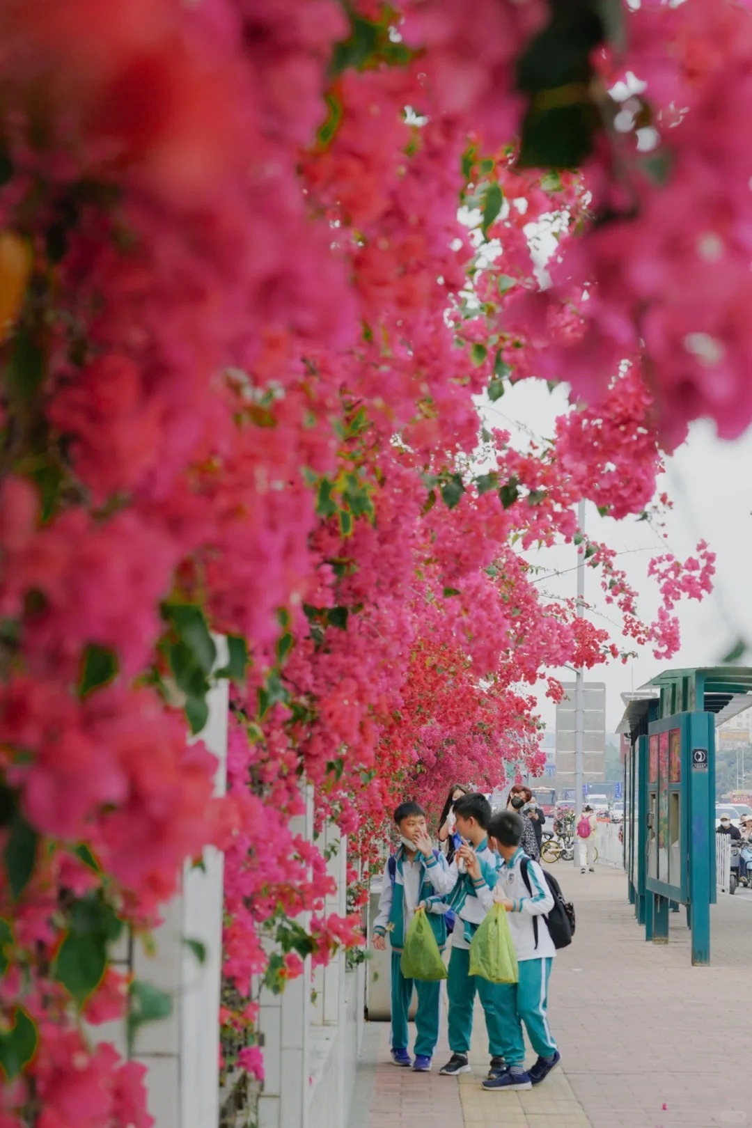 Những địa điểm nổi tiếng như Đường Hải Tân (Quảng Châu), Ngã tư Xích Cảng hay Cổng Vườn Bách thảo đều được bao phủ bởi hoa giấy rực rỡ. Những bức tường hoa, giàn hoa leo trở thành điểm check-in không thể bỏ qua của du khách. Mỗi bức ảnh chụp cùng hoa giấy đều mang một nét đẹp riêng, vừa độc đáo vừa ấn tượng.