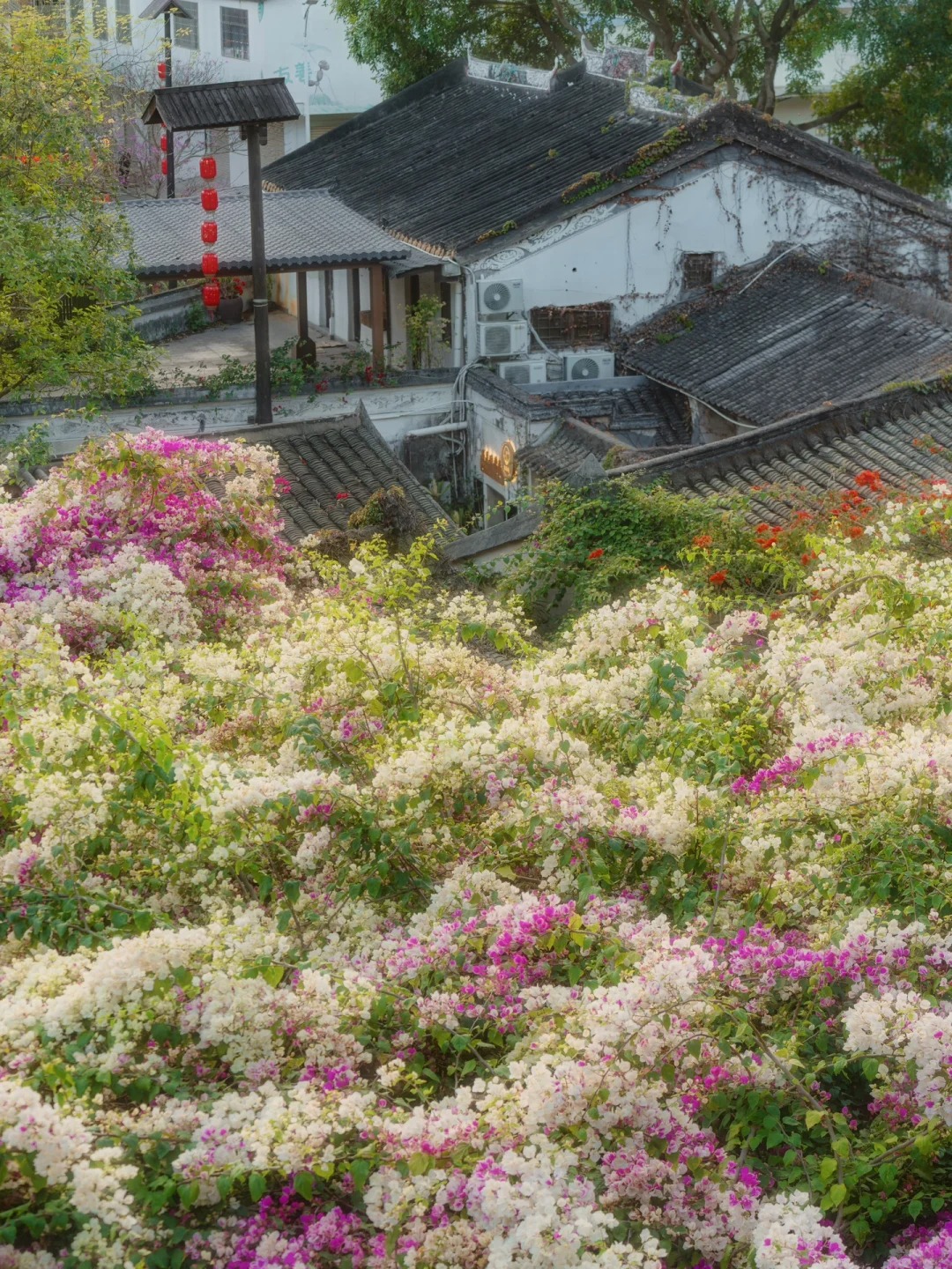 Làng Cam Khanh ở Thâm Quyến không chỉ là di sản của những trang sử cổ kính mà còn là điểm hẹn lý tưởng để ngắm nhìn sắc hoa giấy rực rỡ. Với bề dày lịch sử hơn 350 năm, nơi đây từng là nơi định cư của Tạ Văn Minh và Trác Mỹ Phát - những người Hẹ từ Mai Châu, họ đã bị quyến rũ bởi vẻ đẹp tự nhiên và sự yên bình của Cam Khanh.