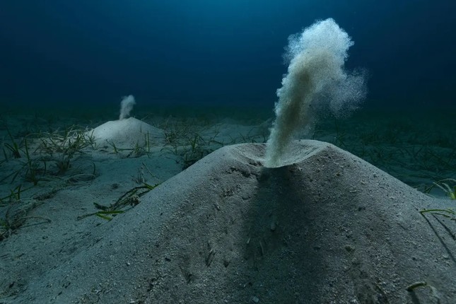 Bức ảnh chụp những con giun biển đẩy những luồng cát từ đỉnh hang hình nón dưới đáy biển, được Angel Fitor chụp tại Tây Ban Nha năm 2023, đã giành chiến thắng ở hạng mục Thế giới đại dương và giải thưởng lớn chung cuộc.