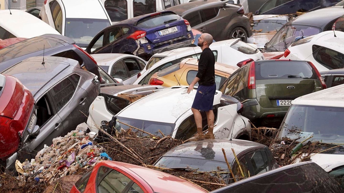 Lũ lụt liên miên bắt đầu từ đầu tuần ở đây cuốn trôi xe cộ, nhấn chìm nhà cửa và làm mất điện trên khắp miền đông Tây Ban Nha. Đội cứu hộ phải lội qua vùng nước cao ngang cổ để tiếp cận một số cư dân.