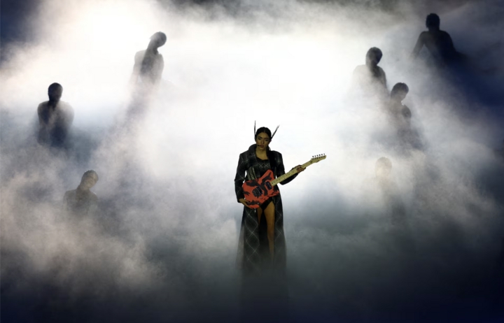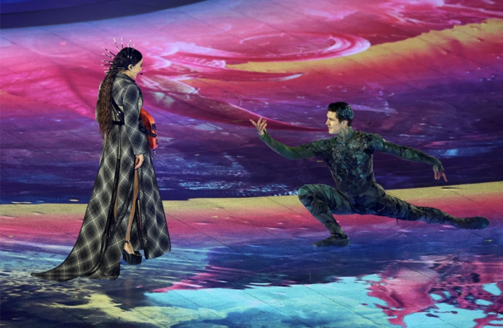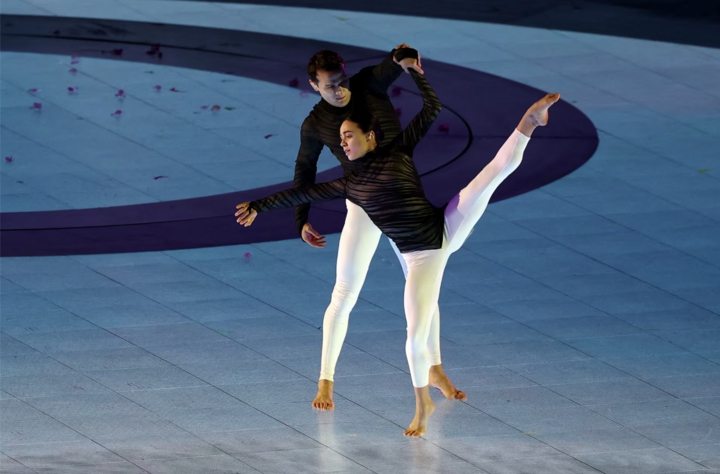 Các nghệ sĩ biểu diễn trong phần trình diễn Elevation tại lễ bế mạc.