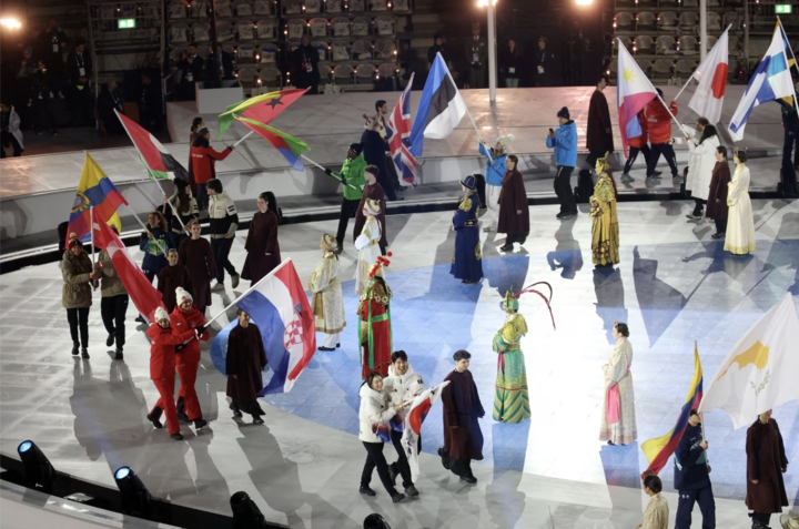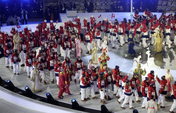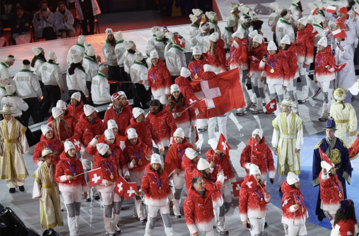 Đoàn vận động viên Thụy Sĩ diễu hành trong lễ bế mạc.