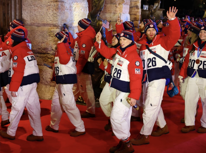 Đoàn vận động viên Mỹ diễu hành trong lễ bế mạc.
