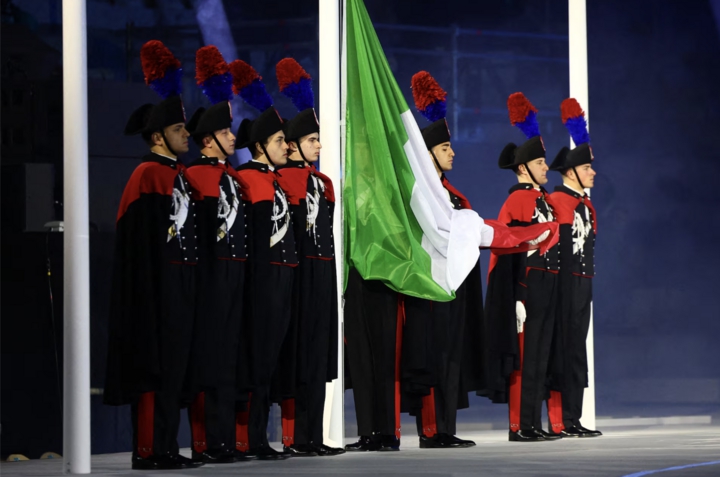 Quốc kỳ Italy được các thành viên quân đội kéo lên trong lễ bế mạc.