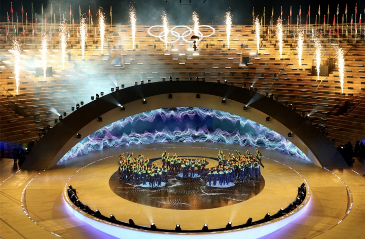 Các vòng tròn Olympic xuất hiện trong lễ bế mạc.