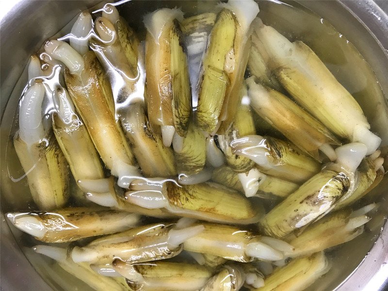Bước 1: Sau khi mua ốc móng tay về, bạn cho vào chậu nước muối với vài giọt dầu ăn (để tạo lớp màng), để khoảng 2 tiếng, cho chúng nhả hết cát. Thay nước 1–2 lần trong quá trình ngâm để tăng hiệu quả. Sau khi ngâm, rửa lại nhiều lần với nước để loại bỏ hoàn toàn cặn bẩn và bùn cát. Tỏi bóc bỏ vỏ rồi băm nhỏ. Gừng băm nhỏ. Hành lá cắt phần gốc và phần lá xanh để riêng, thái nhỏ.